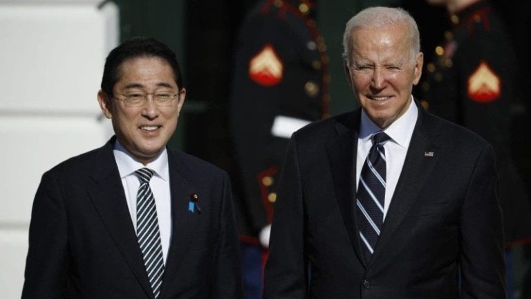 Biden passed the press pool with Prime Minister Fumio Kishida of Japan on their way into the White House for a bilateral conversation.