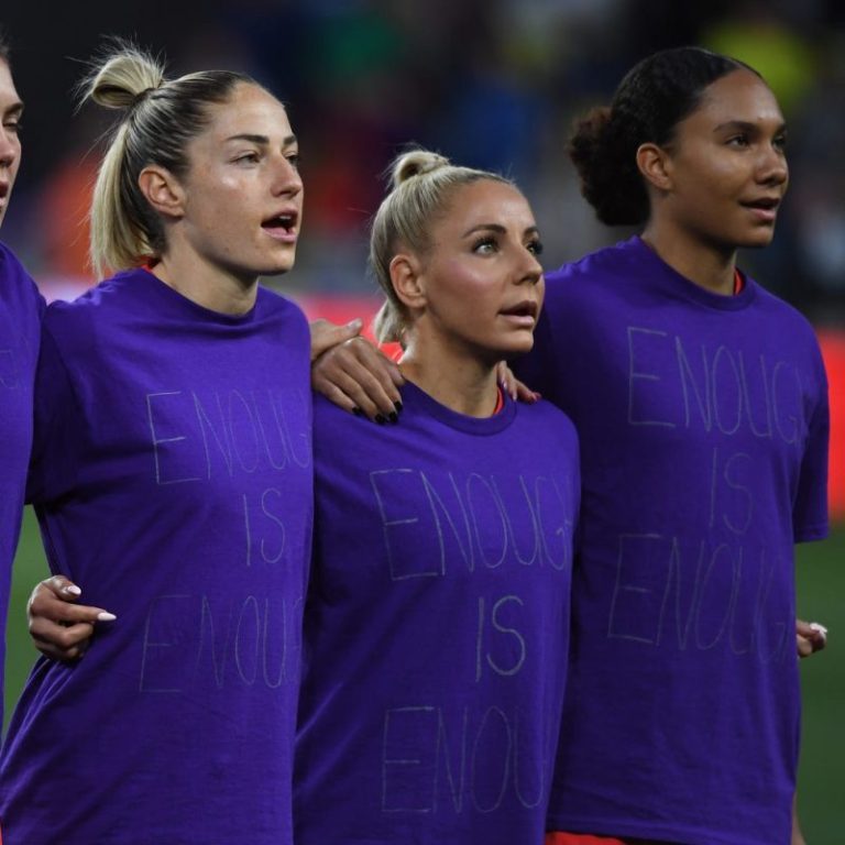 Informed they weren’t legally allowed to strike, Canada played in the SheBelieves Cup under protest instead, turning their warmup shirts inside out so the Canada logo could not be seen. They also came out for the national anthem before their first game, against the U.S. women, in purple shirts with “Enough is enough” written in big, bold letters.