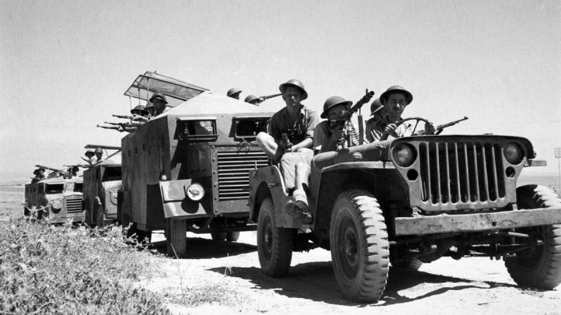 Israel proclaimed independence, re-establishing the modern Jewish state and was immediately attacked by a coalition of Arab states, the first of a series of Arab-Israeli wars. Against all odds, the Israelis fight off the Arab armies in the War of Independence.