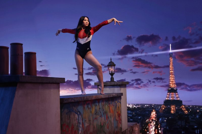 A skateboarder flipped his board in mid-air, a gymnast turned an aerial cartwheel and a sport climber hung one-handed from an implement – all amid iconic images of Paris, site of the Summer Olympics set to start in July.