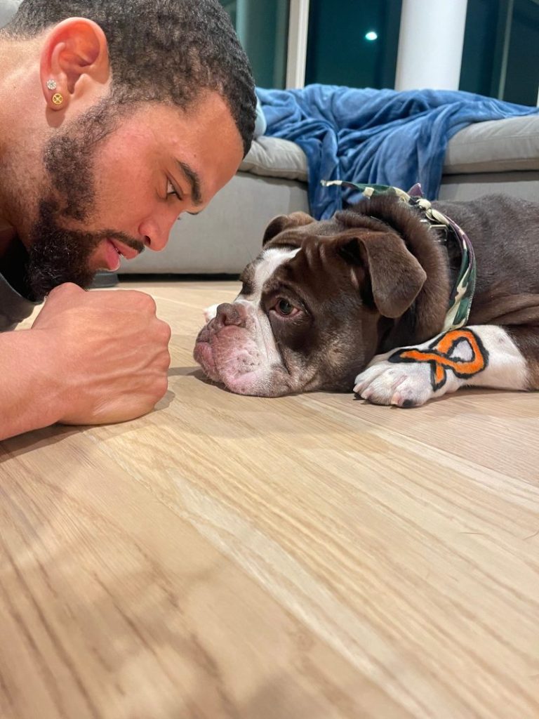 ‘I love having Supa greet me when I get home, especially after long days of workouts and school,’ Williams wrote via email. ‘There is no judging. No questions. Just me and him chillin.’