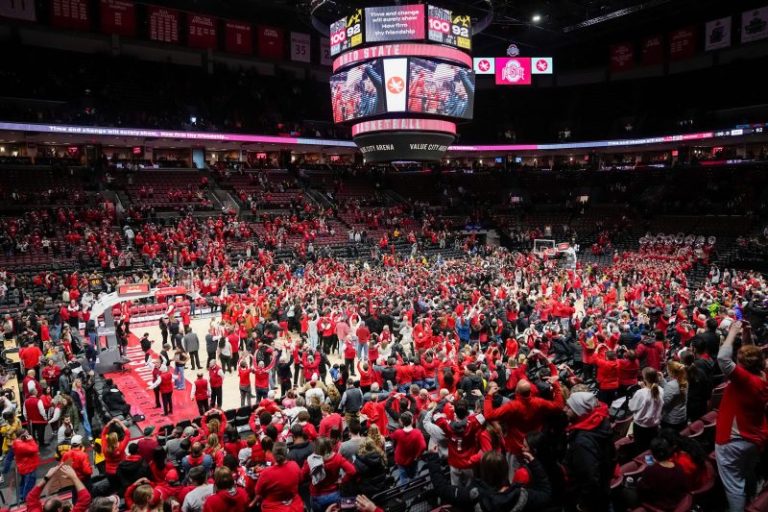 ‘We try not to be too heavy-handed on the policy of court-storming for a problem that doesn’t necessarily exist. … Don’t want to unfairly financially hurt already cash-strapped athletic departments,’ Big Ten vice president of strategic communications Scott Markley said Monday in an interview with The Associated Press.