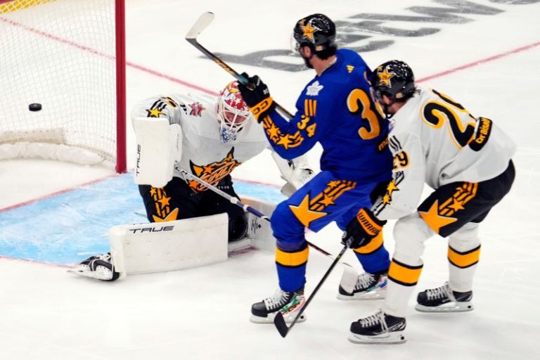The All-Star weekend is supposed to be rough on goalies, but there were outstanding performances. Avalanche goalie Alexandar Georgiev got the $100,000 prize in the skills competition by making nine saves against McDavid in the one-on-one contest. He stopped nine of 10 shots in the first game for Team MacKinnon. Florida Panthers goalie Sergei Bobrovsky (Team McDavid) had the save of the day, sliding over to rob Team Matthews’ Mitch Marner in the final seconds of the first half of the championship game to keep the score at 3-3. Marner, whose Maple Leafs lost to Bobrovsky in the second round last season, playfully tossed his glove at the goalie.