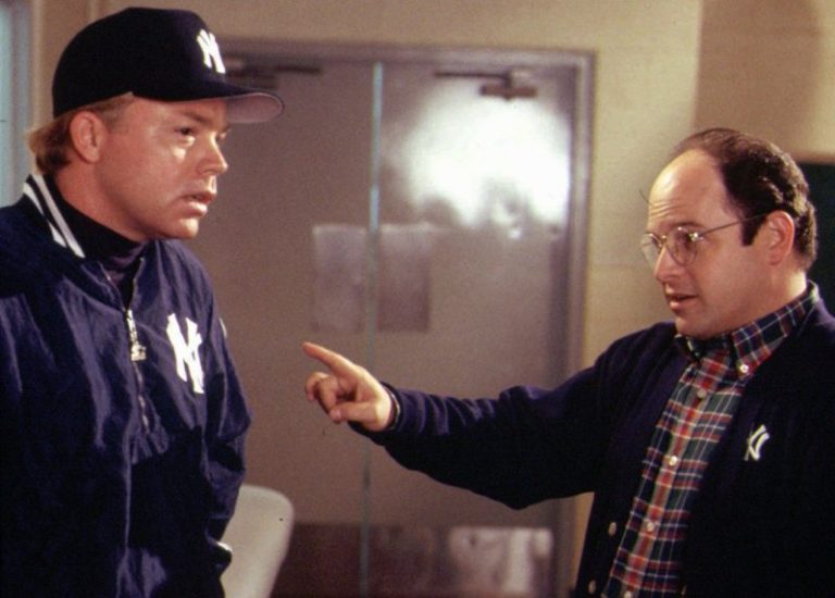 George, then working for the New York Yankees, pitches an idea for the team to switch from polyester to cotton uniforms after feeling Danny Tartabull’s jersey.