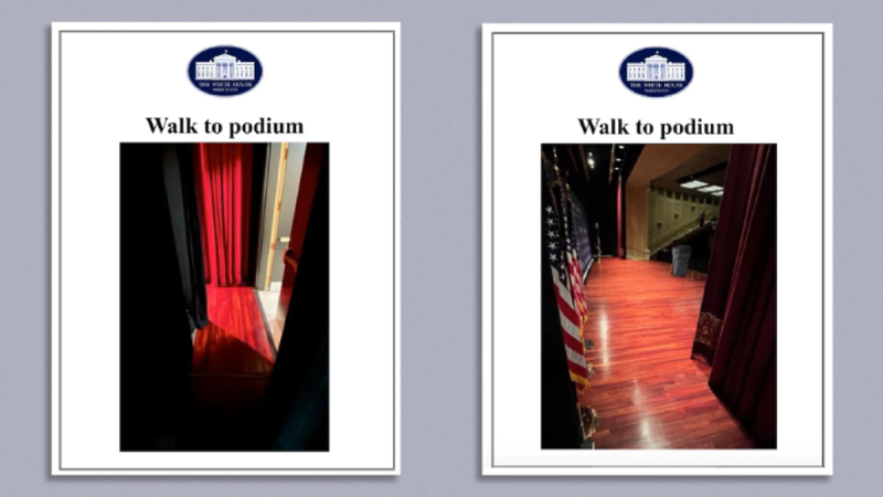According to a copy of the instructions obtained by Axios, Biden’s aides created a document that read in bold letters, ‘Walk to podium.’ With the White House insignia, it included photos showing a clear pathway to the podium.