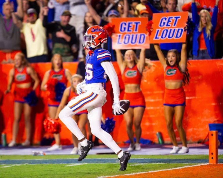 McClain took the interception back 25 yards, backpedaling the final three yards, to push the Florida lead to 48-20 in the waning moments of the SEC matchup. As he headed into the end zone, the entire Gators defense swarmed McClain, who transferred into Florida this offseason from the Deion Sanders-led Colorado as a walk-on for the Gators.