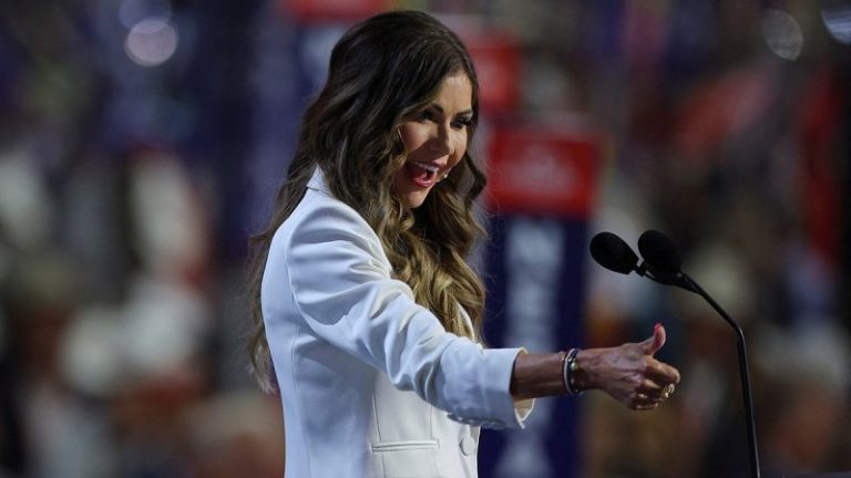 ‘Kristi has been very strong on Border Security,’ a statement released by the Trump transition team read. ‘She was the first Governor to send National Guard Soldiers to help Texas fight the Biden Border Crisis, and they were sent a total of eight times.’