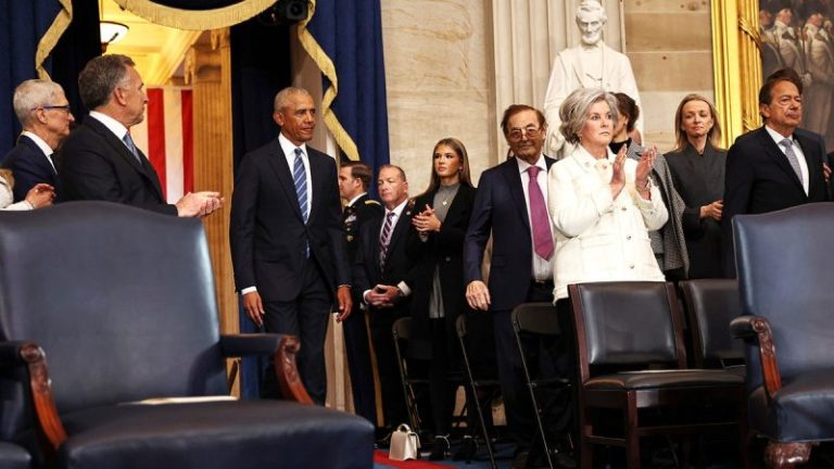 Former President Barack Obama arrived at the U.S. Capitol on Monday for President-elect Trump’s inauguration ceremony without former First Lady Michelle Obama.