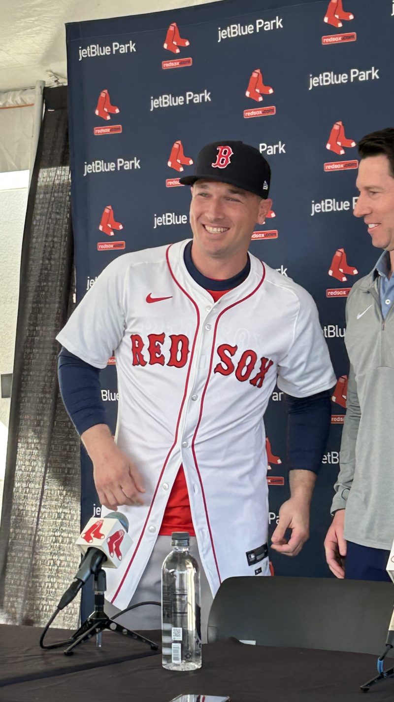 Sunday, Bregman seemed both relaxed and edgy, playfully tossing a Red Sox cap on agent Boras’s head, looking nearly starry-eyed mentioning how his favorite player – Red Sox legend Dustin Pedroia – calling him several times to recruit him, along with current Red Sox shortstop Trevor Story.