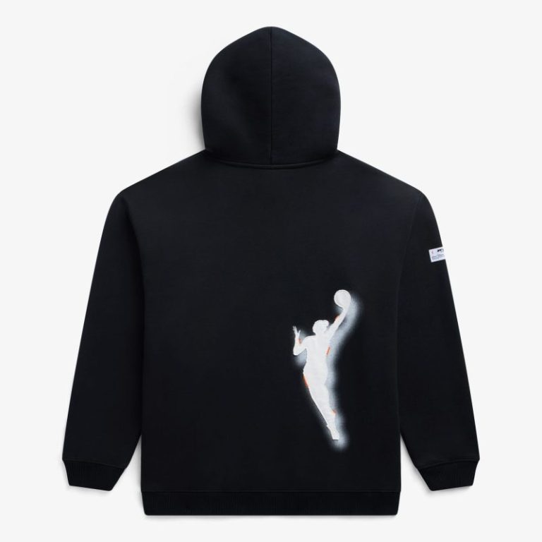 The unisex WNBA logo hoodie showcases the silhouette surrounded with a spray painted, graffiti border on the back. “We really had a lot of fun with the WNBA graphic to give it a little twist, but at the same time keep the authenticity of the WNBA logo,” she said. The front of the sweater features an additional WNBA logo in orange.