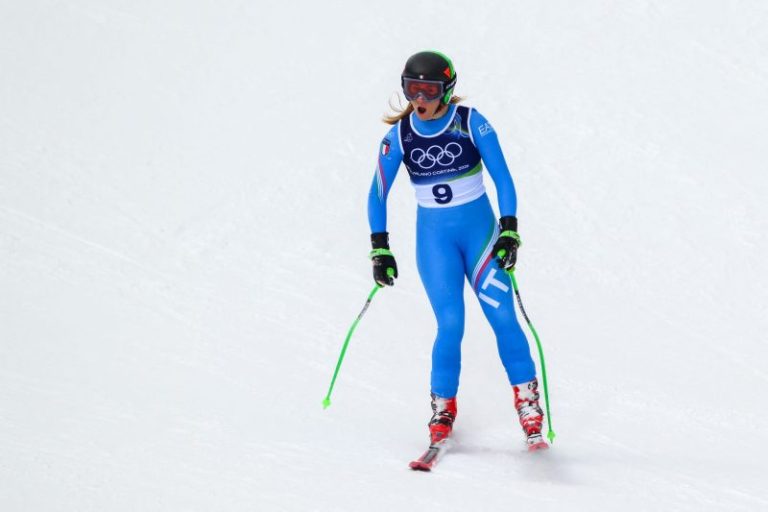 ‘I’m really sorry for her. She didn’t deserve this,’ Goggia said after crashing in the downhill portion of the team combined event. Goggia won bronze in the individual downhill two days prior and lit the cauldron in Cortina during the opening ceremony.