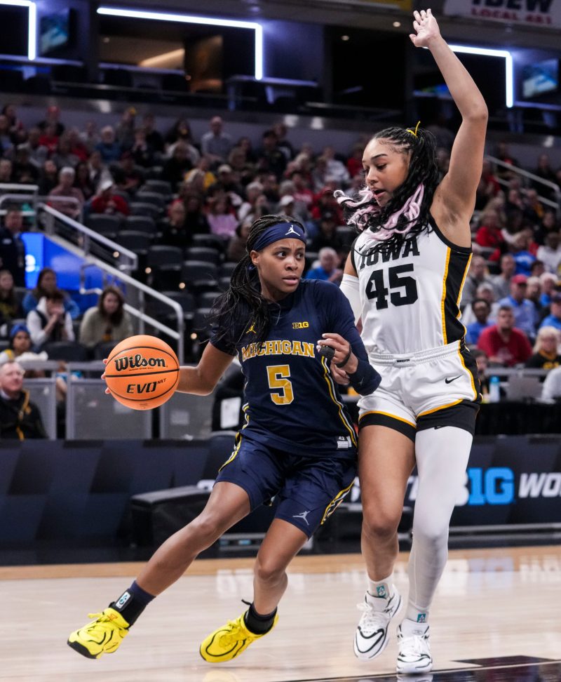 Foul trouble plagued Michigan’s frontcourt as well. Michigan starting center Ashley Sofilkanich fouled out with two minutes remaining. With Sofilkanich limited to 16 minutes, Iowa won the rebounding battle, 40-32.